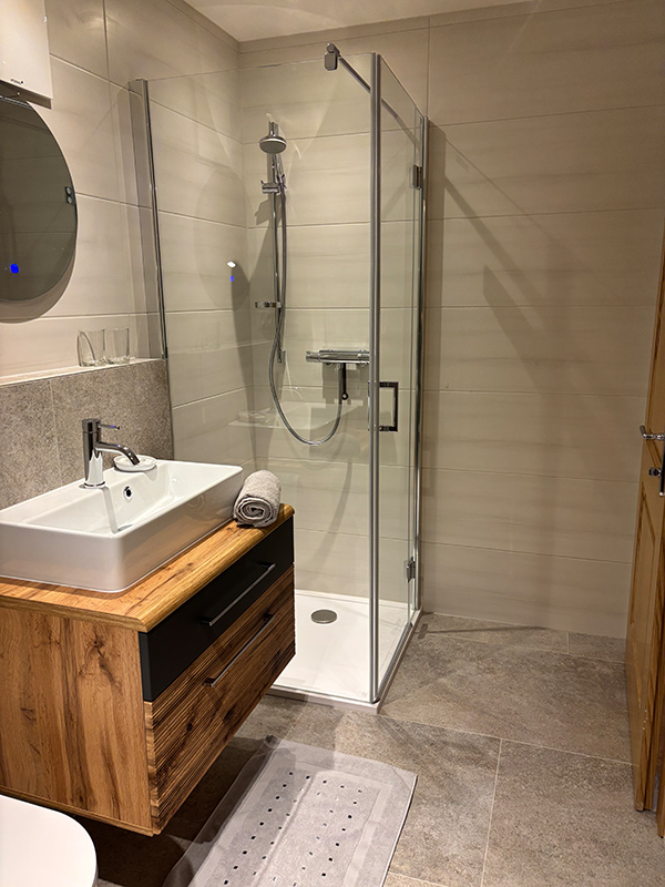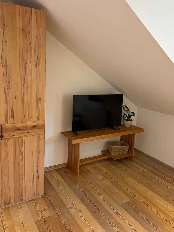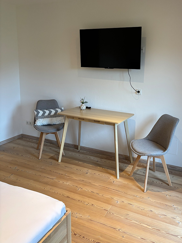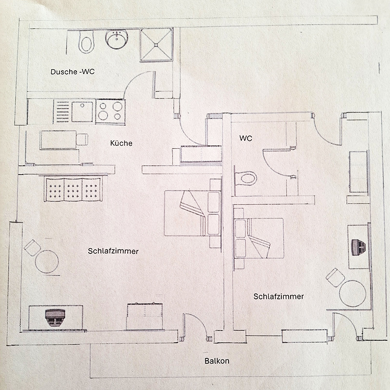 Die Ferienwohnung hat 2 getrennten Schlafzimmer mit TV, Wohnküche, DU/WC und Balkon.